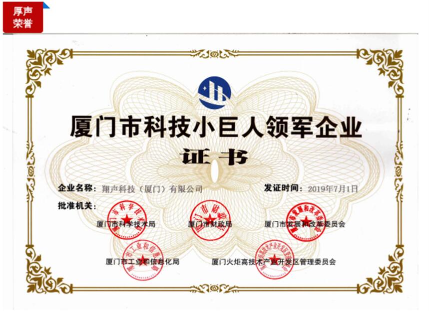 翔聲科技(廈門(mén))有限公司榮獲“廈門(mén)市科技小巨人領(lǐng)軍企業(yè)”稱號(hào)